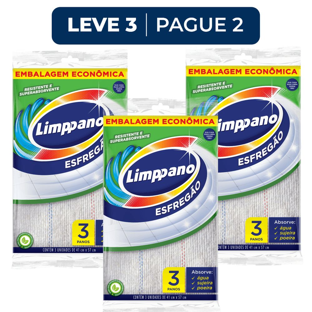 Cada embalagem possui 3 panos nas dimensões 41cm X 57cm.