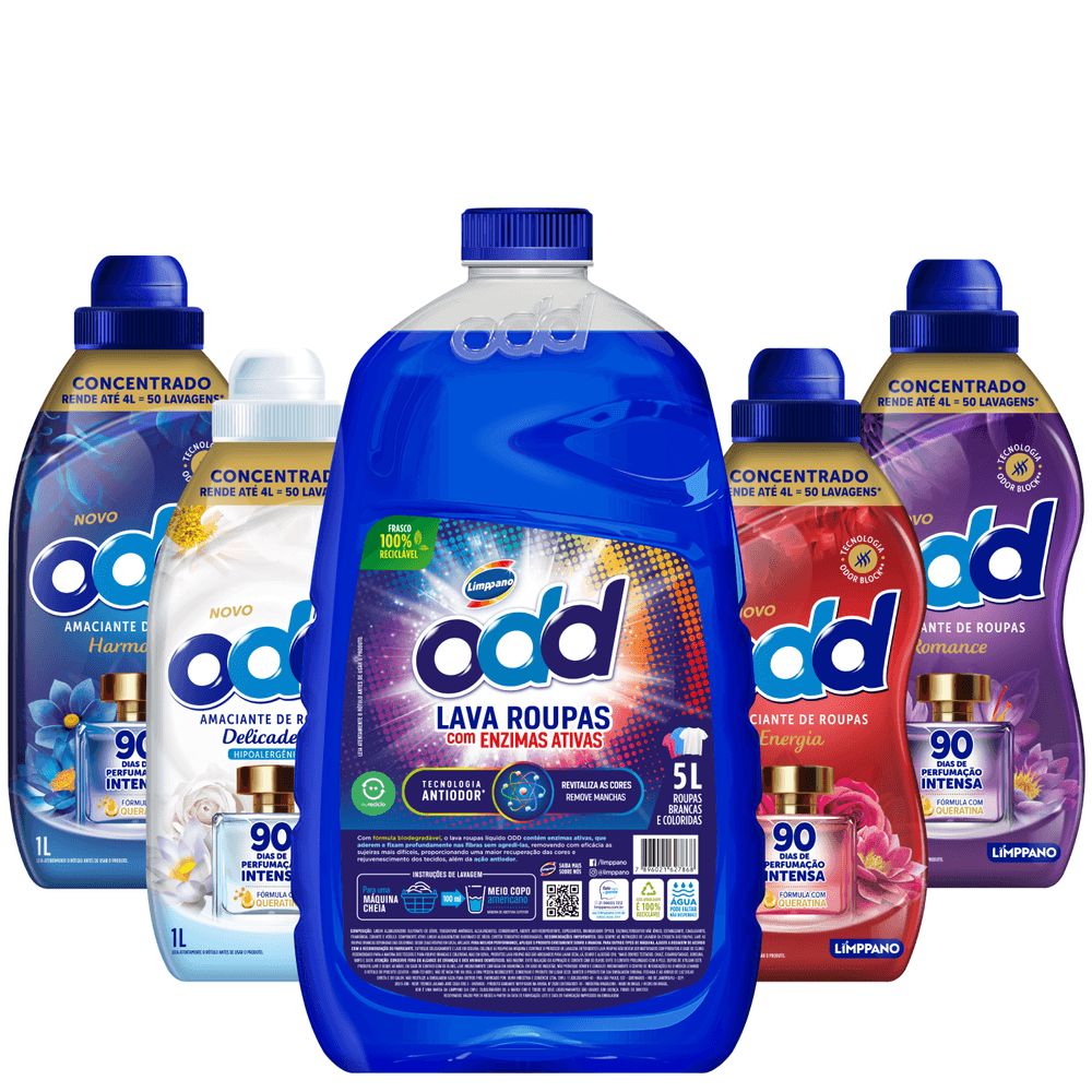 Com fórmula biodegradável, o Sabão Líquido ODD Lavagem Completa contém enzimas ativas, que aderem e fixam profundamente nas fibras sem agredi-las, removendo com eficácia as sujeiras mais difíceis, proporcionando uma maior recuperação das cores e rejuvenescimento dos tecidos, além da ação antiodor*. Pode ser usado para lavar roupas brancas e coloridas.