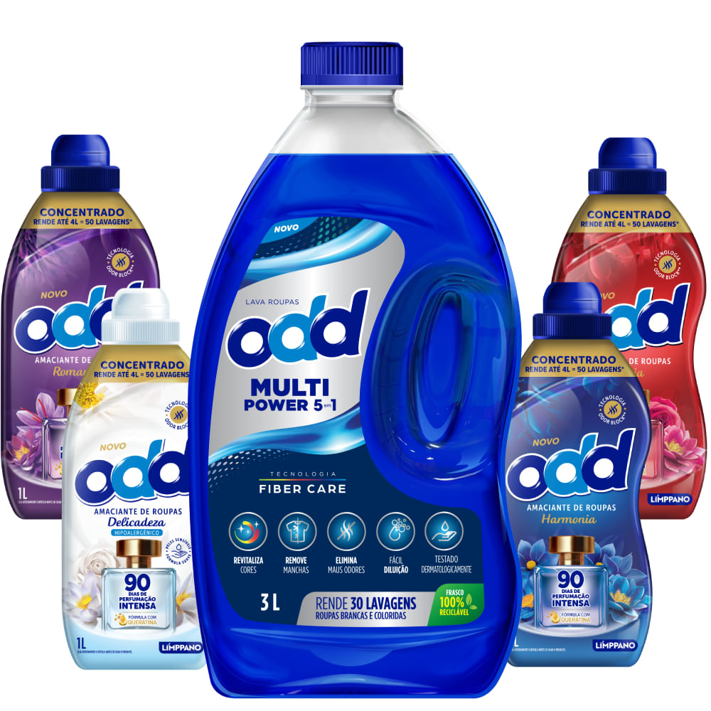 Lava Roupas Líquido ODD Multi Power 3L + Amaciante Concentrado 500ml